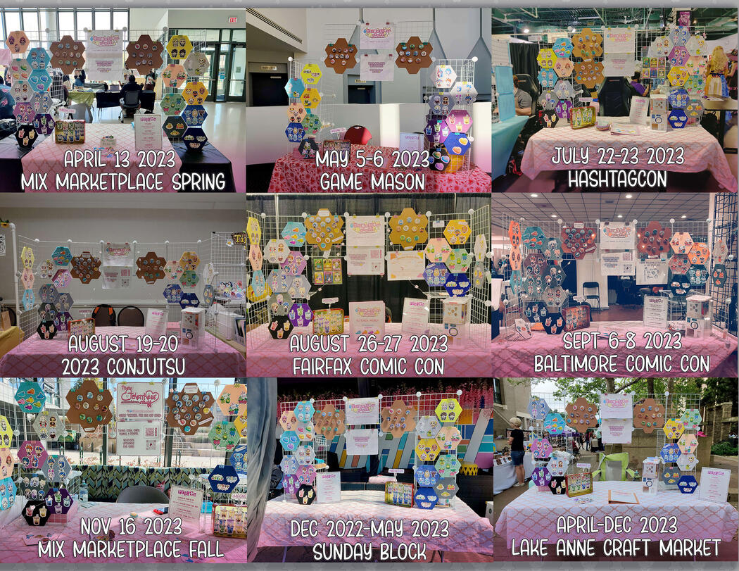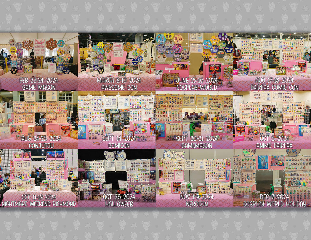 Links to my socials, online store, contacts, and convention history are displayed here. Welcome!